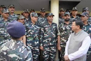 मुख्यमंत्री पुष्कर सिंह धामी ने बनबसा की सीमा चौकी पर एस.एस.बी. अधिकारियों व जवानों से की मुलाकात