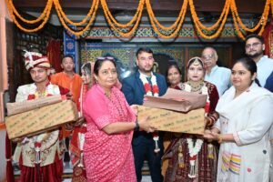 अध्यक्ष ऋतु खण्डूडी ने कोटद्वार कौड़ियां निवासी आयु० सुनेना संग दुधारखाल निवासी चि० सूरज सिंह और मानपुर निवासी आयु० निर्मला संग रीठाखाल निवासी चि० नीरज सिंह के सामूहिक विवाह में आशीर्वाद देकर उन्हें सुखद जीवन की शुभकामनाएं दी ।